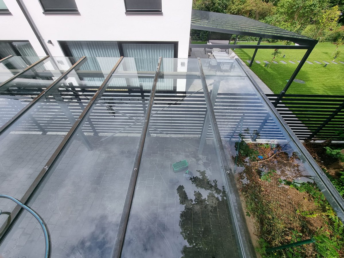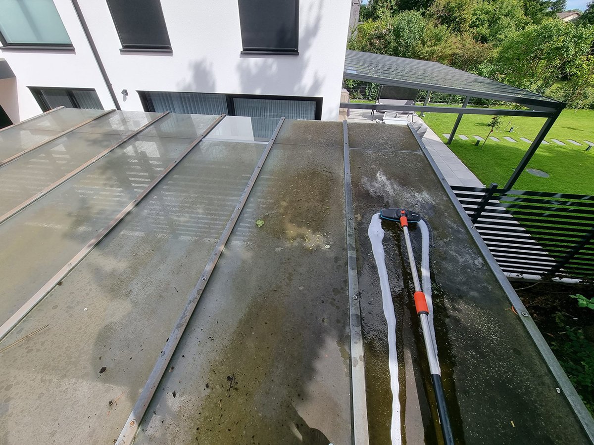 Gründliche Reinigung von Wintergärten, einschließlich Glas- und Rahmenflächen.